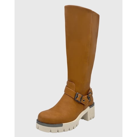 Danicolle Calzado - Bota Para Mujer Cafe Bajo La Rodilla Correa Con Hebilla | Lider Electrohogar