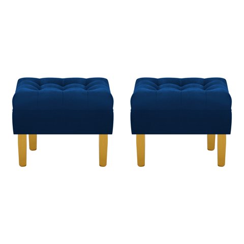 Bodevir - Set Pouf Wood 1C Felpa 01 Azul Marino | Lider Electrohogar