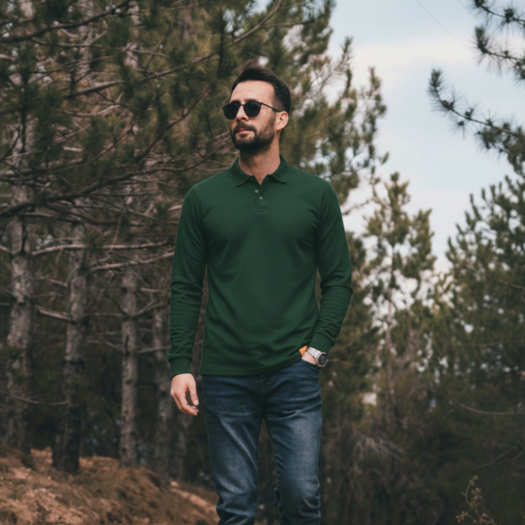 T-World - Polera Hombre Piqué Manga Larga Premium 60/40 Ideal Para Bordar Verde Pino | Lider Electrohogar