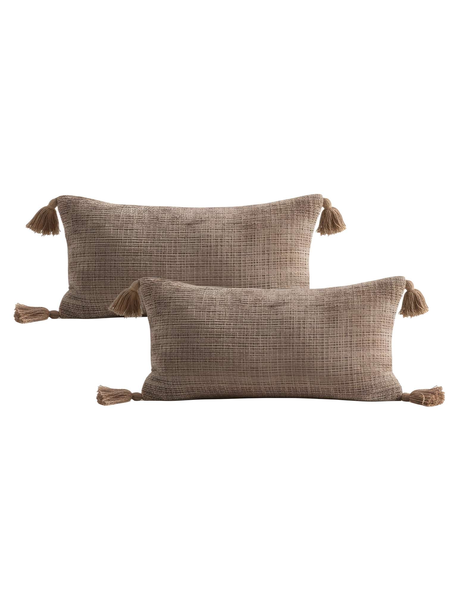 Set de 2 fundas de cojin chenille con borlas 30x50 café