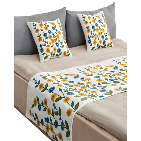 Genérico - Set De Piecera Bordada Con Dos Fundas Blanco 05
