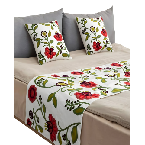 Genérico - Set De Piecera Bordada Con Dos Fundas Blanco 05