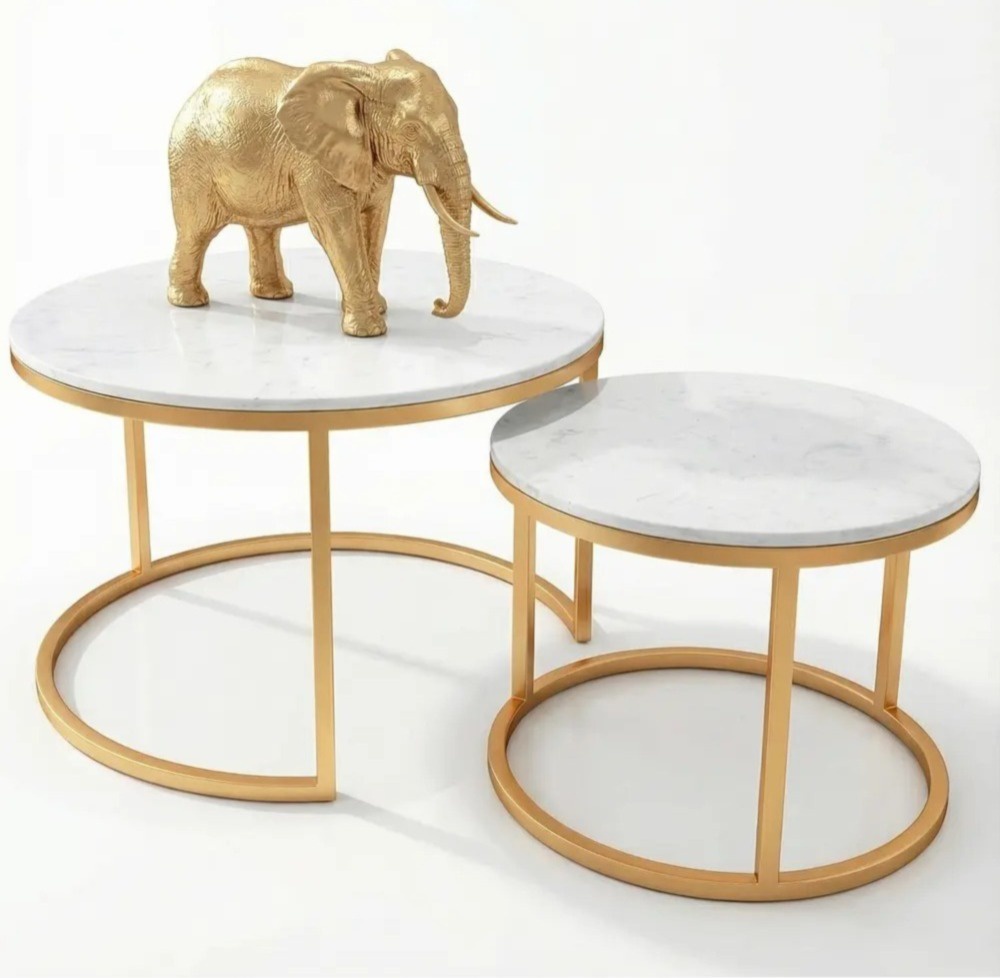 Mesa de centro anidada con cubierta de piedra sinterizada (80 cm + 60 cm)