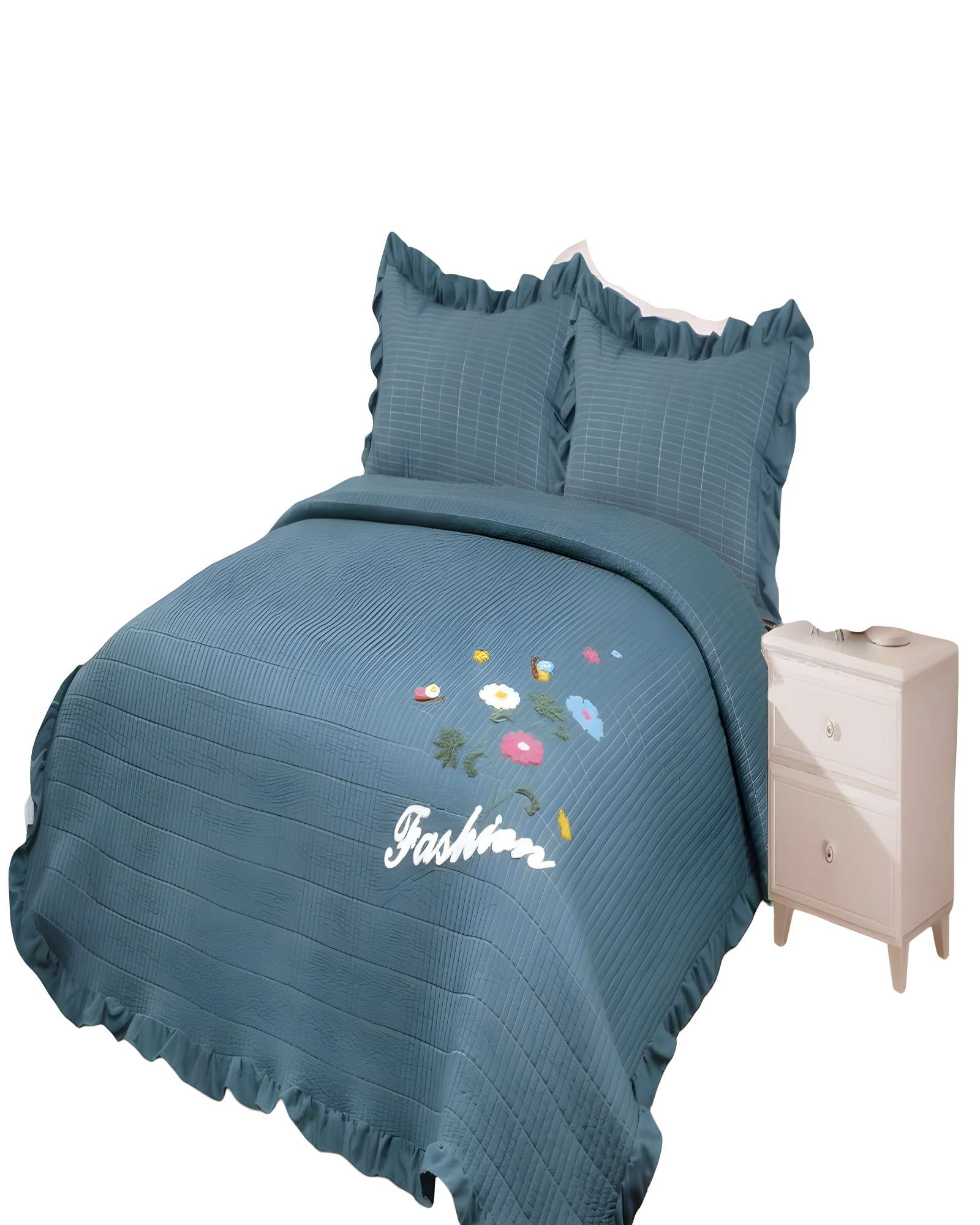 Cubrecama quilt de verano con flores bordadas 2 plazas gris o