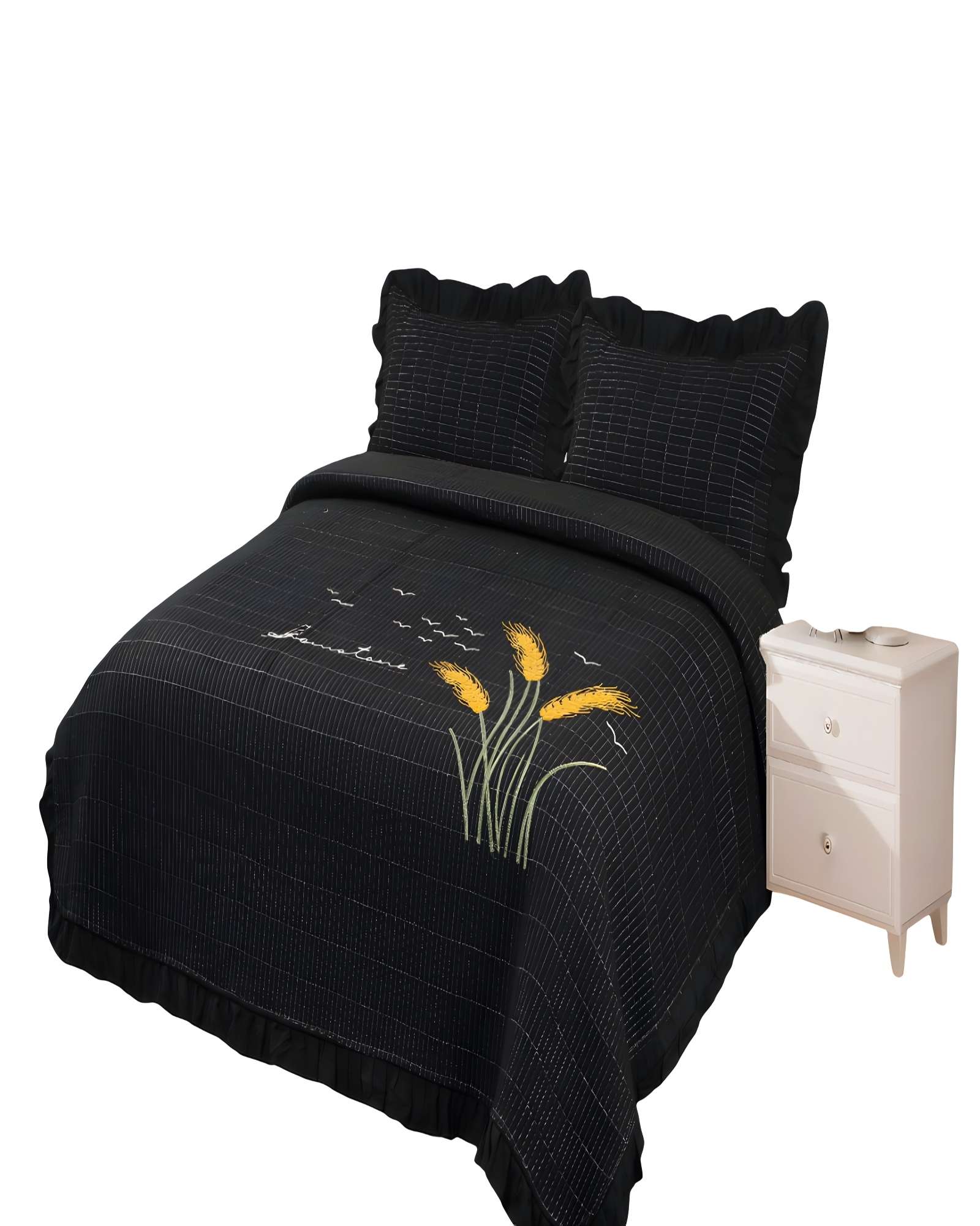 Quilt cubrecama de verano con flores bordadas 2 plazas negro 2