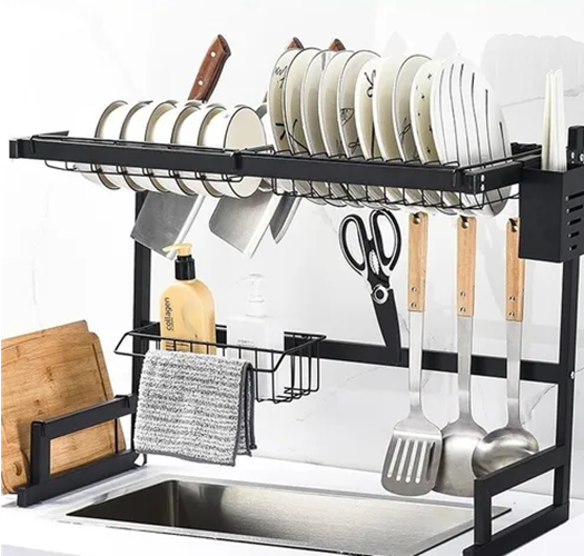 Escurridor Platos Doble Nivel Cocina Organizador Negro