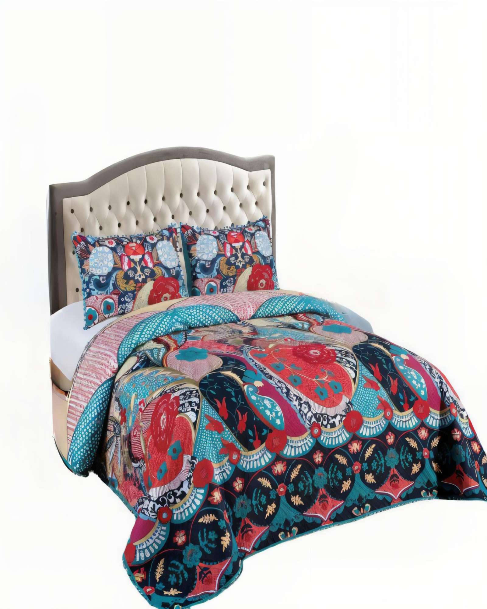 Cubrecama de verano con diseno y pompon king multicolor