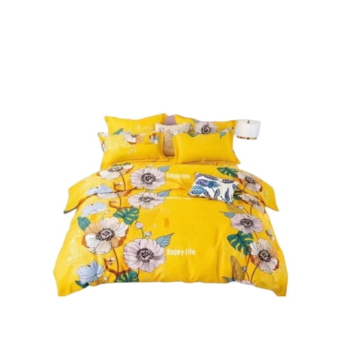 Todohogarsantiadodechile - Sabana Amarilla Estampada Flores Blancas 2 Plazas | Lider Electrohogar