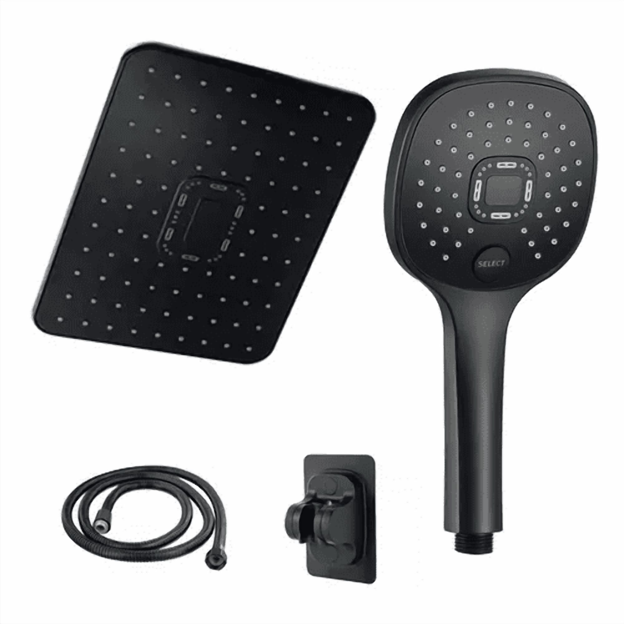 Genericio - Cabezal De Ducha 12'' + 1.5M Manguera Flexible + Soporte De Ducha Negro