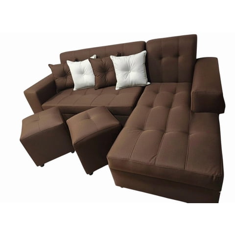 Nevi Express - Sofa Seccional L 3 Cuerpos + 2 Puff Café