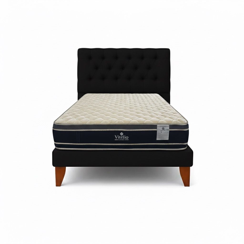 Vitelio - Cama 1 Plaza Negra + Colchon 22 Grosor Cm