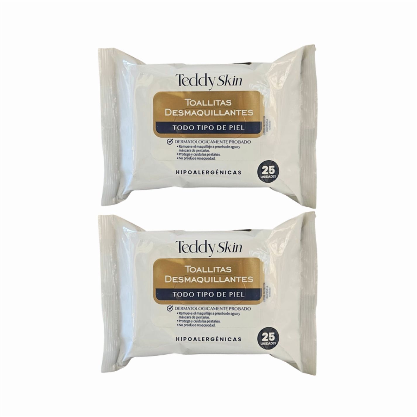 Las toallitas desmaquillantes teddy skin son hipoalergénicas, dermatológicamente testeadas y diseñadas para remover maquillaje waterproof sin irritación, cuidando las pestañas y evitando la resequedad, aptas para todo tipo de piel y perfectas para una limpieza rápida y suave.