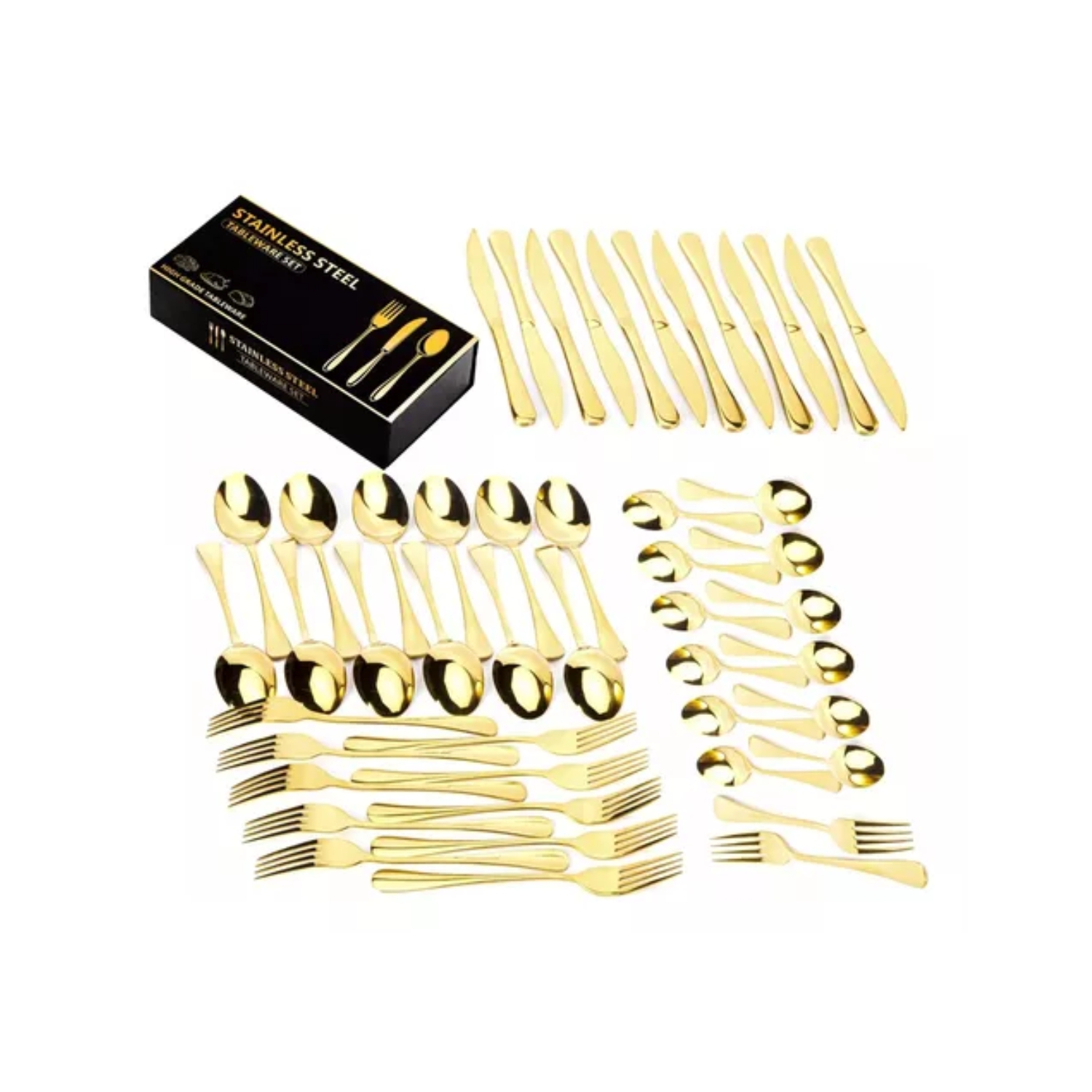 Importclick - Set 24 Piezas Cubiertos Acero Inoxidable Color Dorado
