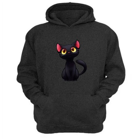 Genérico - Polerón Canguro Gatito Negro Talla Xs Unisex