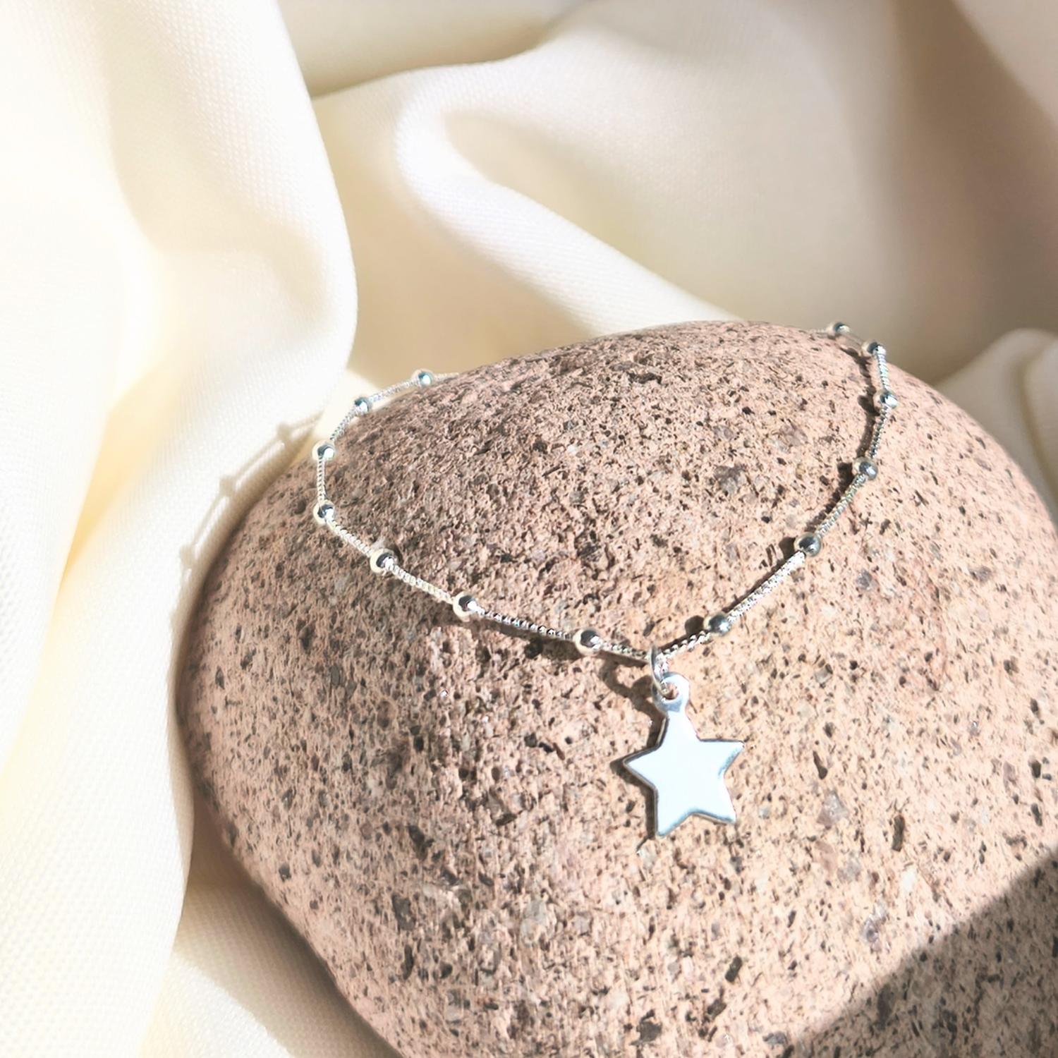 Pulsera de 17 cm elaborada en fina plata 925 con cadena veneciana y un delicado dije en forma de estrella, símbolo de luz, guía y sueños cumplidos. su diseño minimalista la convierte en el accesorio perfecto para llevar sola o combinar con otras pulseras, añadiendo un toque de brillo y elegancia a cualquier look.