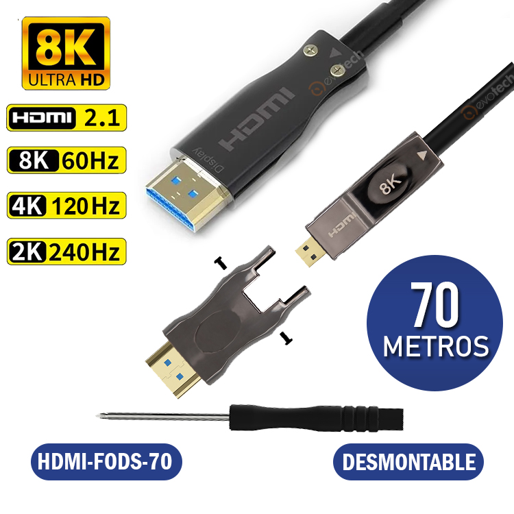 Evotech - Cable Hdmi 2.1 Fibra Optica 8K Conector Desmontable 70 Metros | Lider Electrohogar