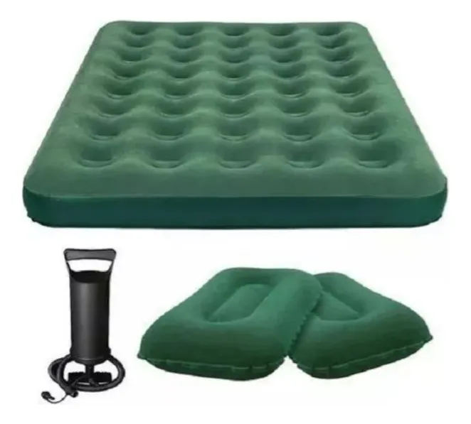 Combo colchón doble + 2 almohadas + inflador para camping