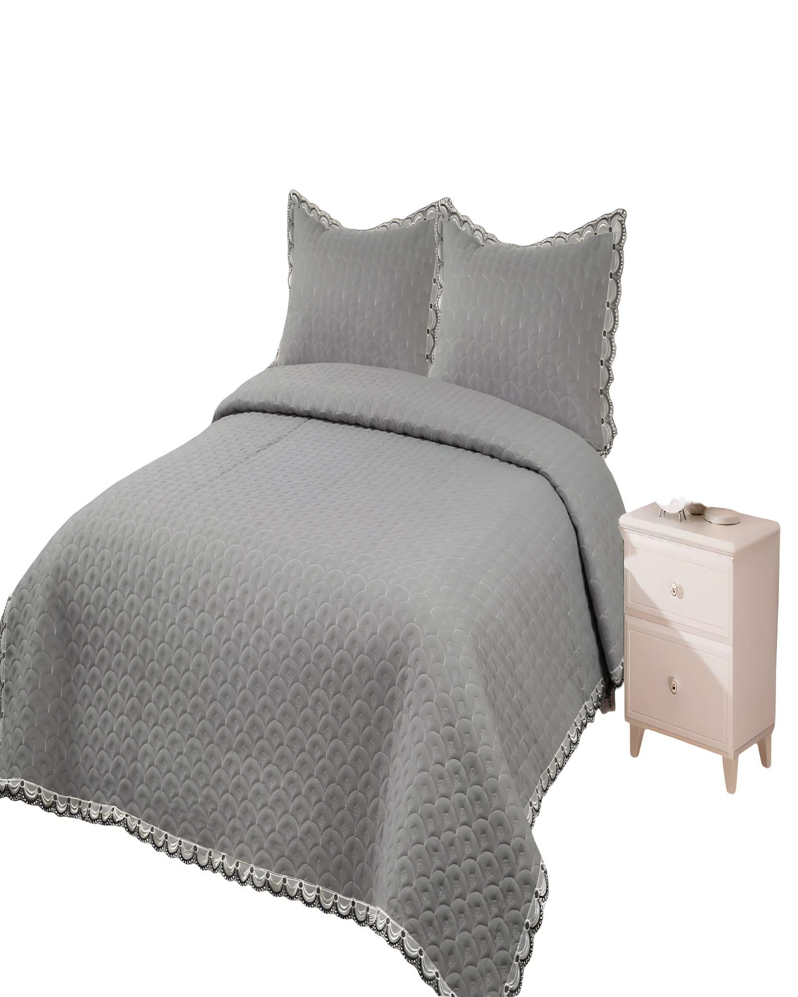 Quilt cubrecama de verano bordado 2 plazas gris