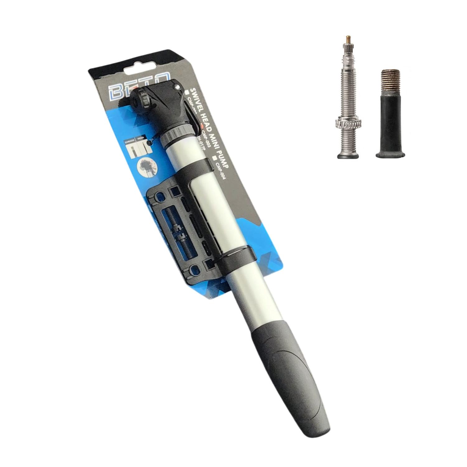 Hecho para llevar siempre en la bici, el beto cmp-003 te saca de apuros cuando el neumático pierde aire en la ruta, el cerro o camino a la pega. su cuerpo de aluminio ofrece durabilidad con bajo peso, mientras el cabezal giratorio facilita conectar sin pelear con la válvula, incluso con rayos densos. el mango en t entrega mejor palanca y un agarre cómodo para inflar con menos esfuerzo. es una bomba de acción simple, precisa y confiable, ideal para mantenciones rápidas y emergencias. el formato corto (entra en banano, mochila o al lado del portabotellas) y el soporte incluido permiten llevarlo siempre fijo al cuadro. compatible con válvulas presta y schrader, viene con instrucciones ilustradas para usarlo al tiro y mantenerte pedaleando. características: - mango en t abatible para mayor control y comodidad al bombear. - cabezal giratorio y reversible que simplifica el acople a la válvula. - construcción de aluminio resistente con piezas plásticas de larga vida. - diseño corto y portátil; ideal para uso urbano, ruta y mtb. - montaje al cuadro mediante soporte incluido para llevarlo siempre contigo. - operación de una sola vía, precisa y fácil de dominar. especificaciones: - tipo: bomba de mano mini, acción simple. - modelo: beto cmp-003. - presión máxima: 80 psi / 5,5 bar. - material: aluminio con componentes plásticos. - compatibilidad: válvulas presta (fina) y schrader (auto). - largo: 30cm. - peso: 167 g (incluye soporte y tornillos). - cabezal: giratorio con palanca de bloqueo. incluye: 1 x bombín beto cmp-003 1 x soporte de montaje para cuadro 2 x tornillos de fijación 1 x instrucciones ilustradas