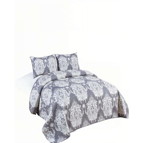 Genérico - Cubrecama De Verano Unicolor Con Pompon 2P Color Gris