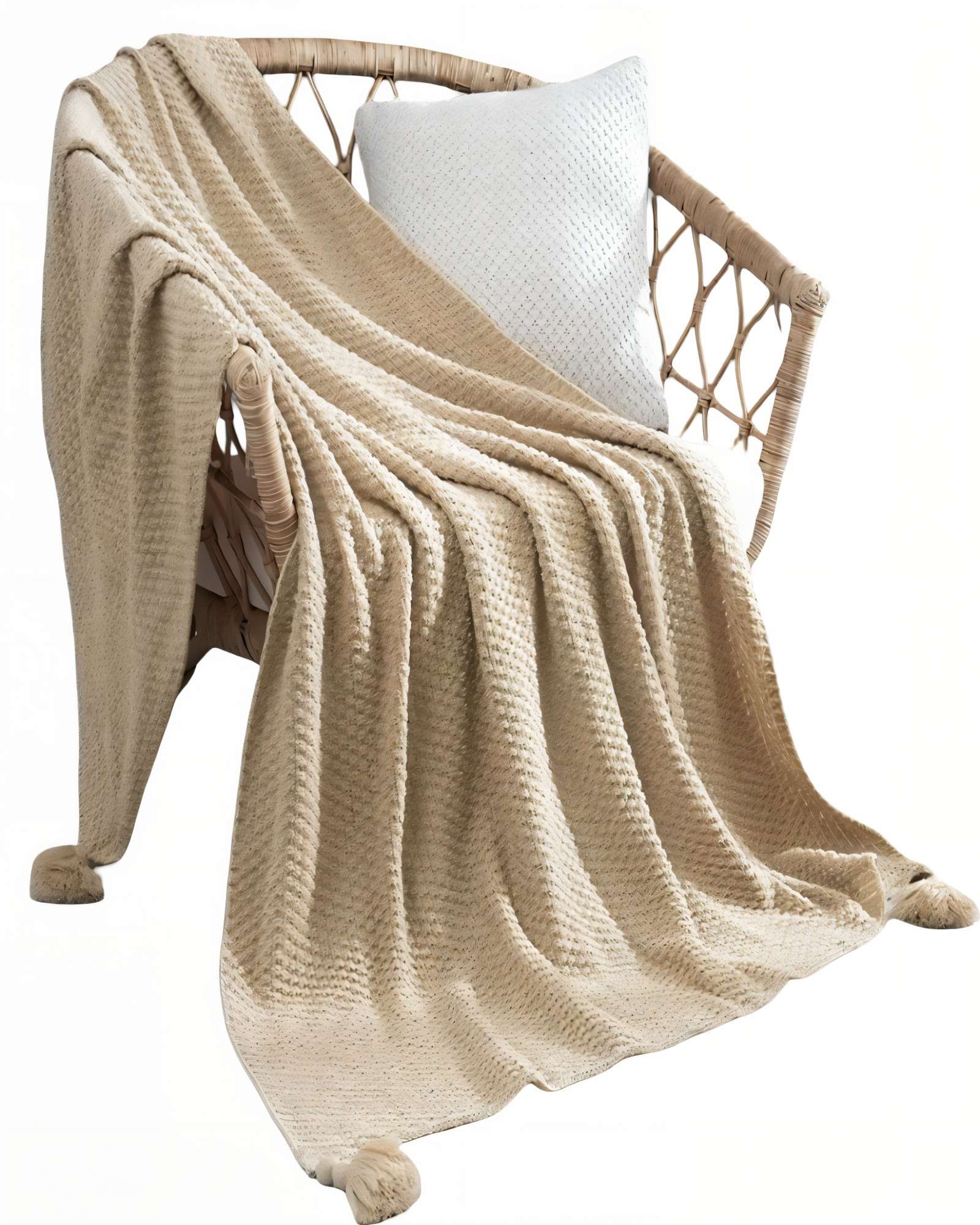 Genérico - Manta Con Flecos Decorativa Y Tejido De Rombos En Relieve Color Beige
