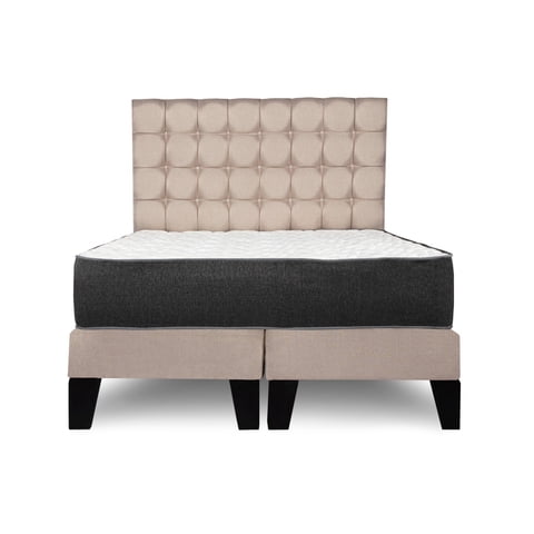 M Sole - Cama 2 Plazas Completa Base Americana + Colchón De Resortes + Respaldo Cuadros Beige | Lider Electrohogar