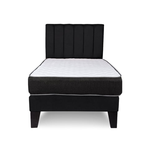 M Sole - Cama 1.5 Plazas Completa Base Americana + Colchón De Resortes + Respaldo Barras Negro | Lider Electrohogar