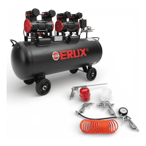 Erux - Compresor De Aire 100L 1600W/Oil Free 8 Bar 220V + Kit Negro 50Hz Monofásica | Lider Electrohogar