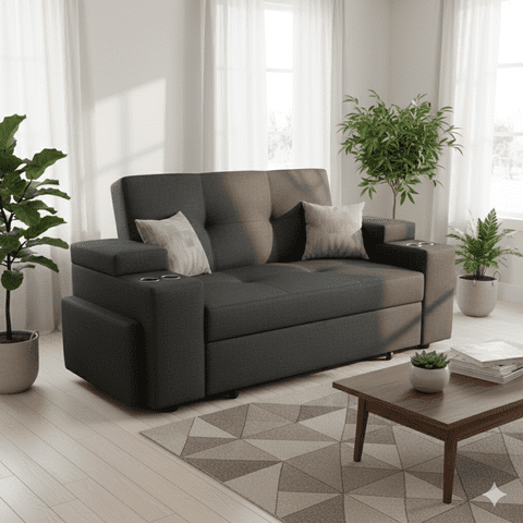 Camila Home - Sofá Cama Elite 2 Plazas Negro Lino Tokio Con Baúles Y Puffs | Lider Electrohogar