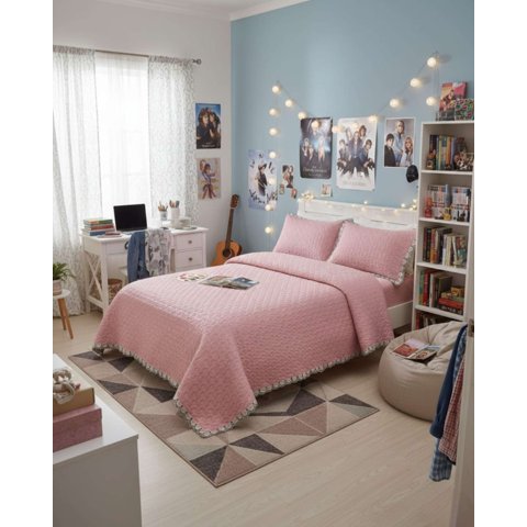 CUBRECAMAS QUILT BORDADOS 2 PLAZA EXTRA SUAVE ROSA