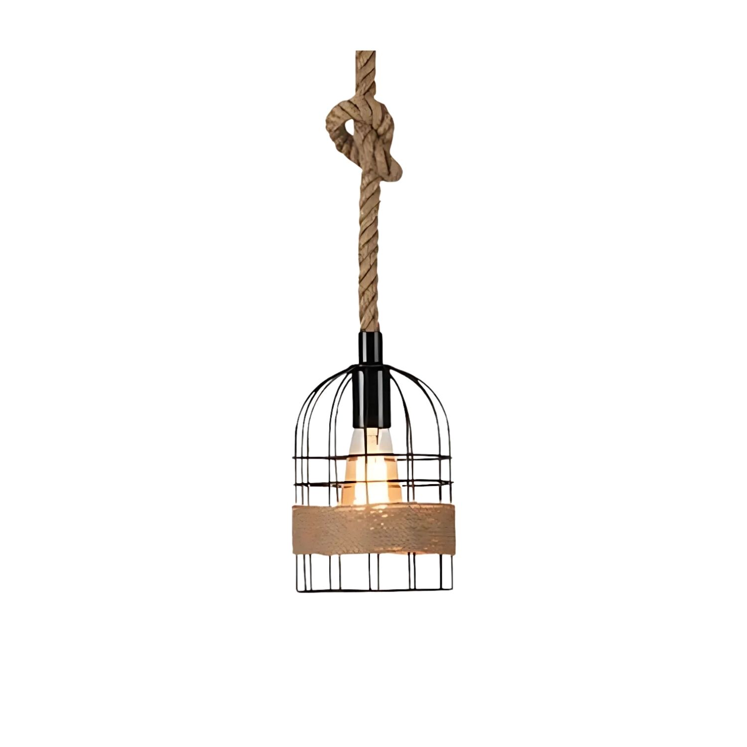 Disparo - Lampara Colgante Rústica Vintage Jaula Cuerda Cañamo 1,28Mts | Lider Electrohogar