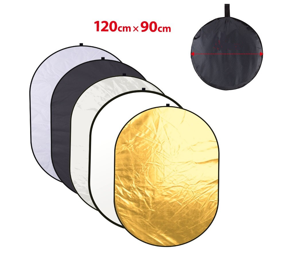 El reflector con cinco superficies reflectantes diferentes se puede utilizar para rellenar, reflejar, difuminar, absorber o suavizar la luz. marco de acero duradero y flexible, se puede plegar fácilmente en tamaño pequeño.