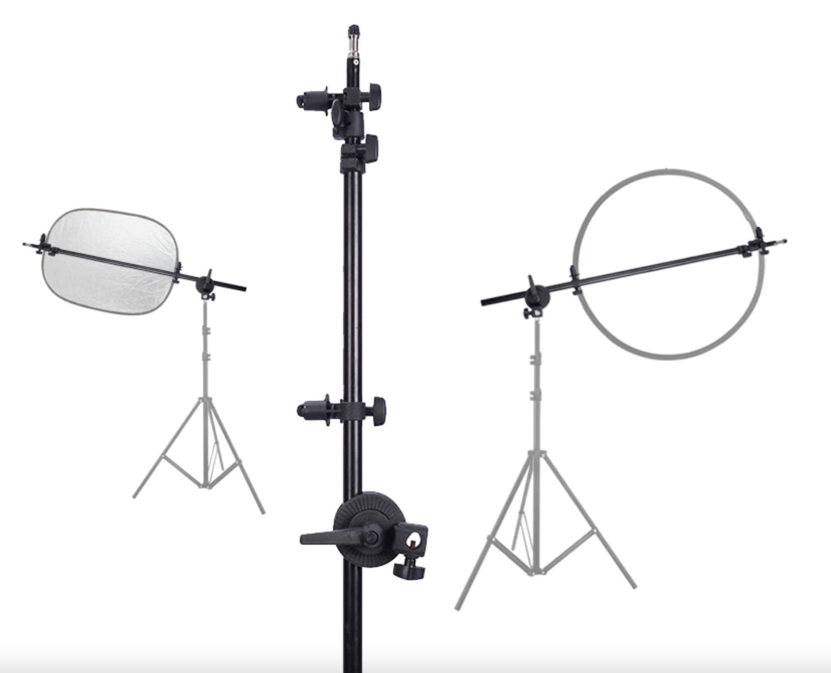 Características: se extiende de 60 cm a 170cm, el soporte puede adaptarse a una amplia gama de reflectores y difusores. la cabeza flexible de agarre giratorio permite posicionar tu reflector o difusor en casi cualquier ángulo para satisfacer tus diferentes necesidades. el cabezal de agarre se puede montar en cualquier soporte de luz o trípode con perno de 1/4 «de diámetro o perno plano.