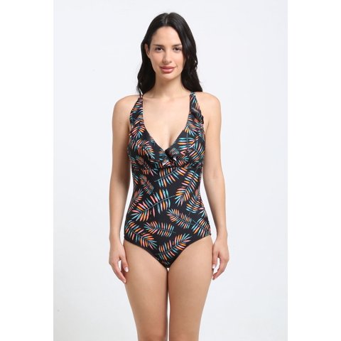 Samia - Enterito Escote Con Vuelos Estampado Hojas Xl | Lider Electrohogar