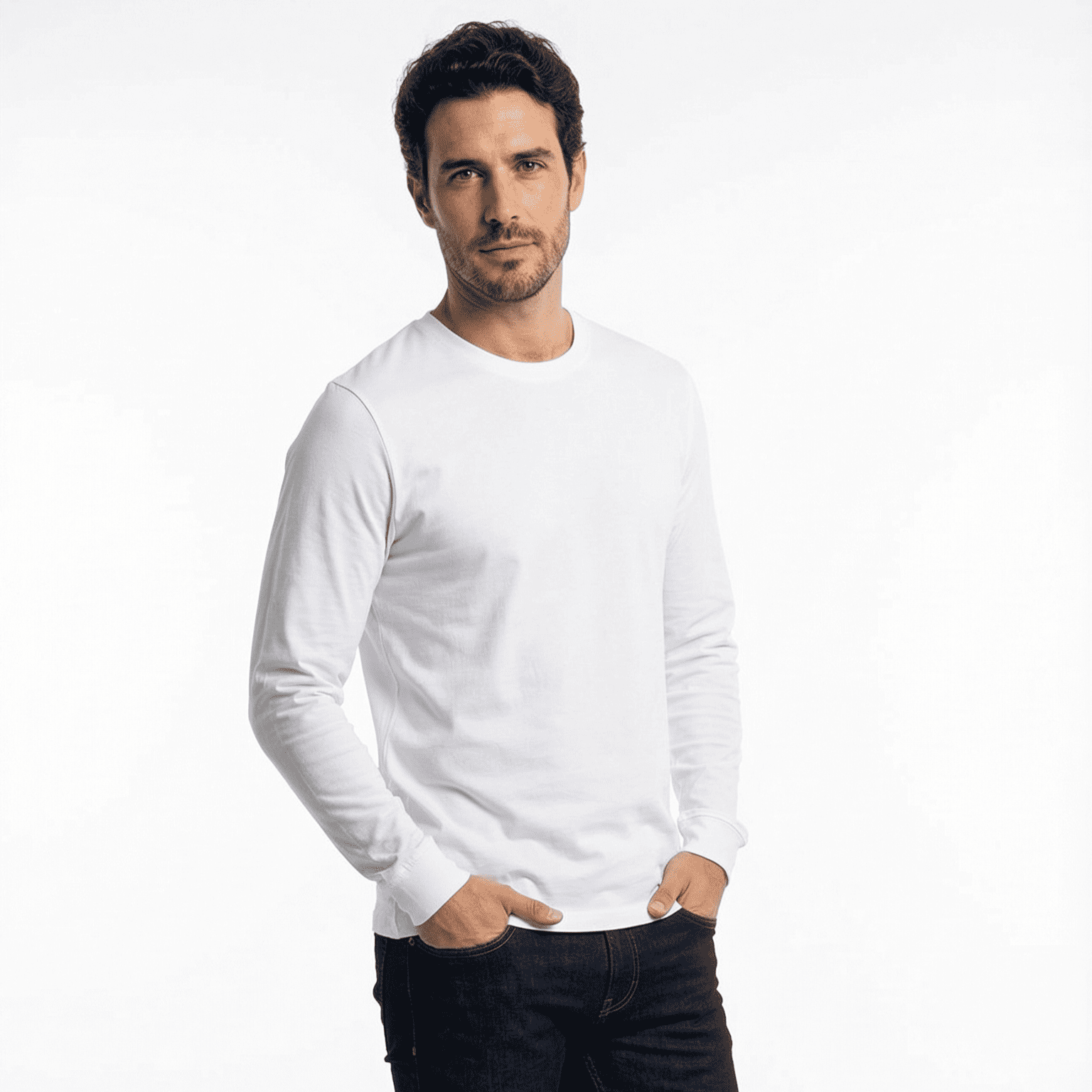 T-World - Polera Algodón Manga Larga Cuello Redondo Uv Antipilling Blanco | Lider Electrohogar