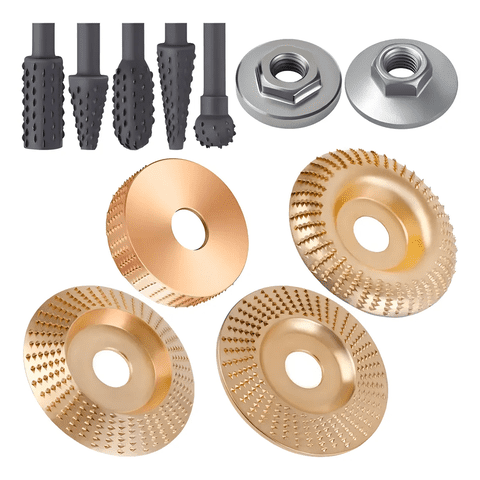 Genérico - Juego Tallar Madera+Escofinas Para Amoladora Angular 7/8,5/8 Dorado