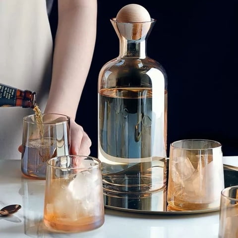 Santú Home & Deco - Jarra De Vidrio Decantador Lujoso 4 Vasos Ambar | Lider Electrohogar