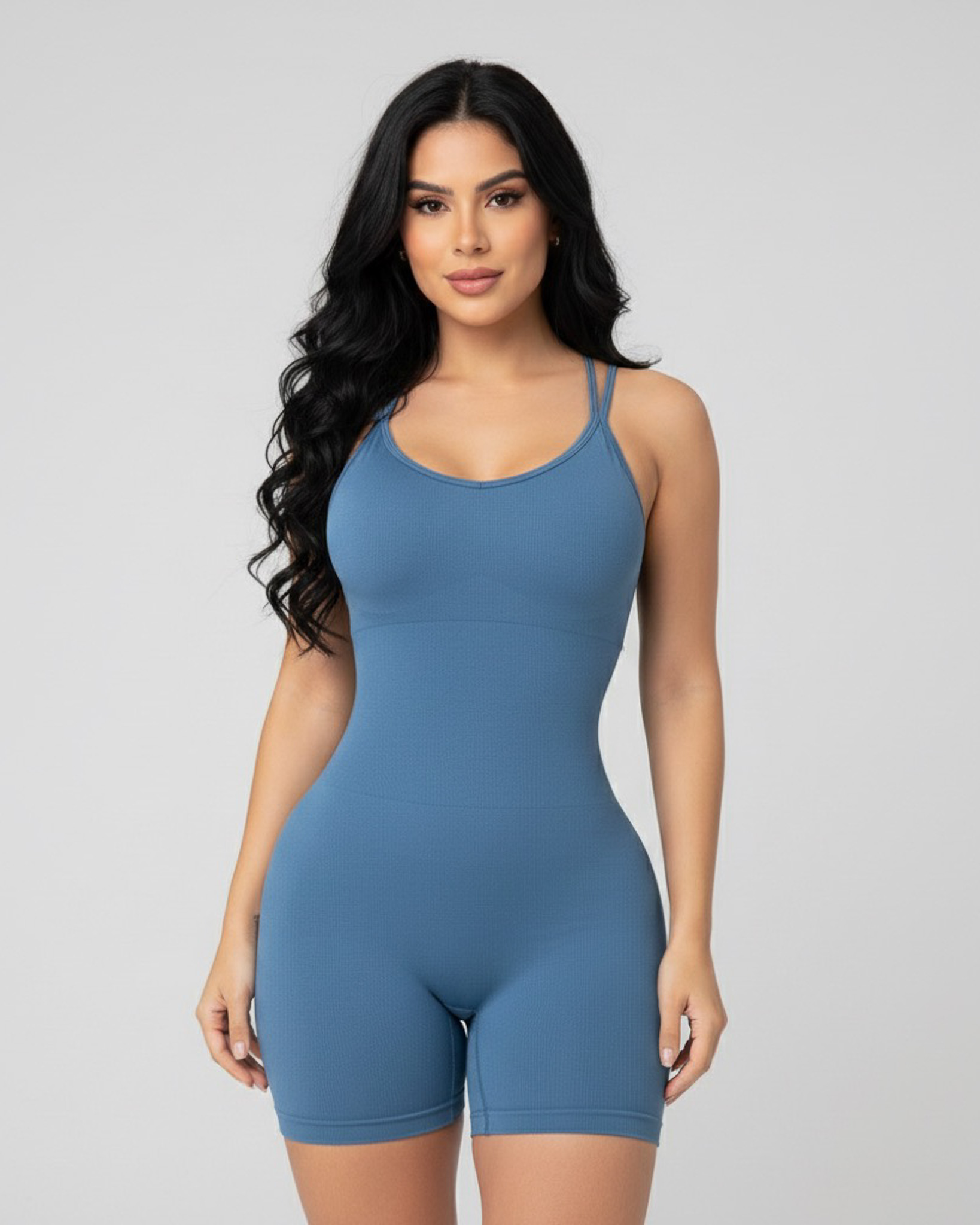 Enterizo deportivo push up para mujer con tirantes cruzados y realce de figura.