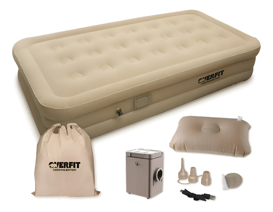 Colchón inflable electrico plaza y media overfit bomba portatil de inflado 190 x 100 cm beige