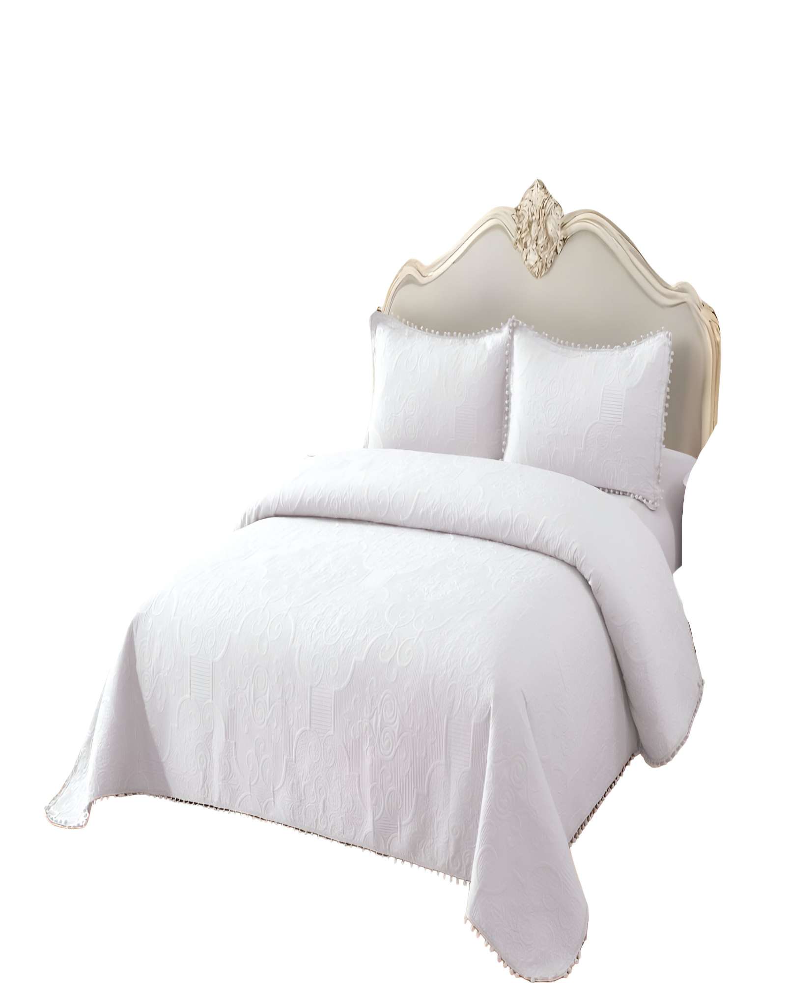 Cubrecama de verano quilt king con pompon color blanco