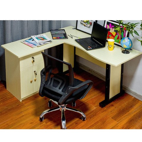 Fmfurniture - Escritorio En L 71X125X90 Cm 1 Puerta Blanco