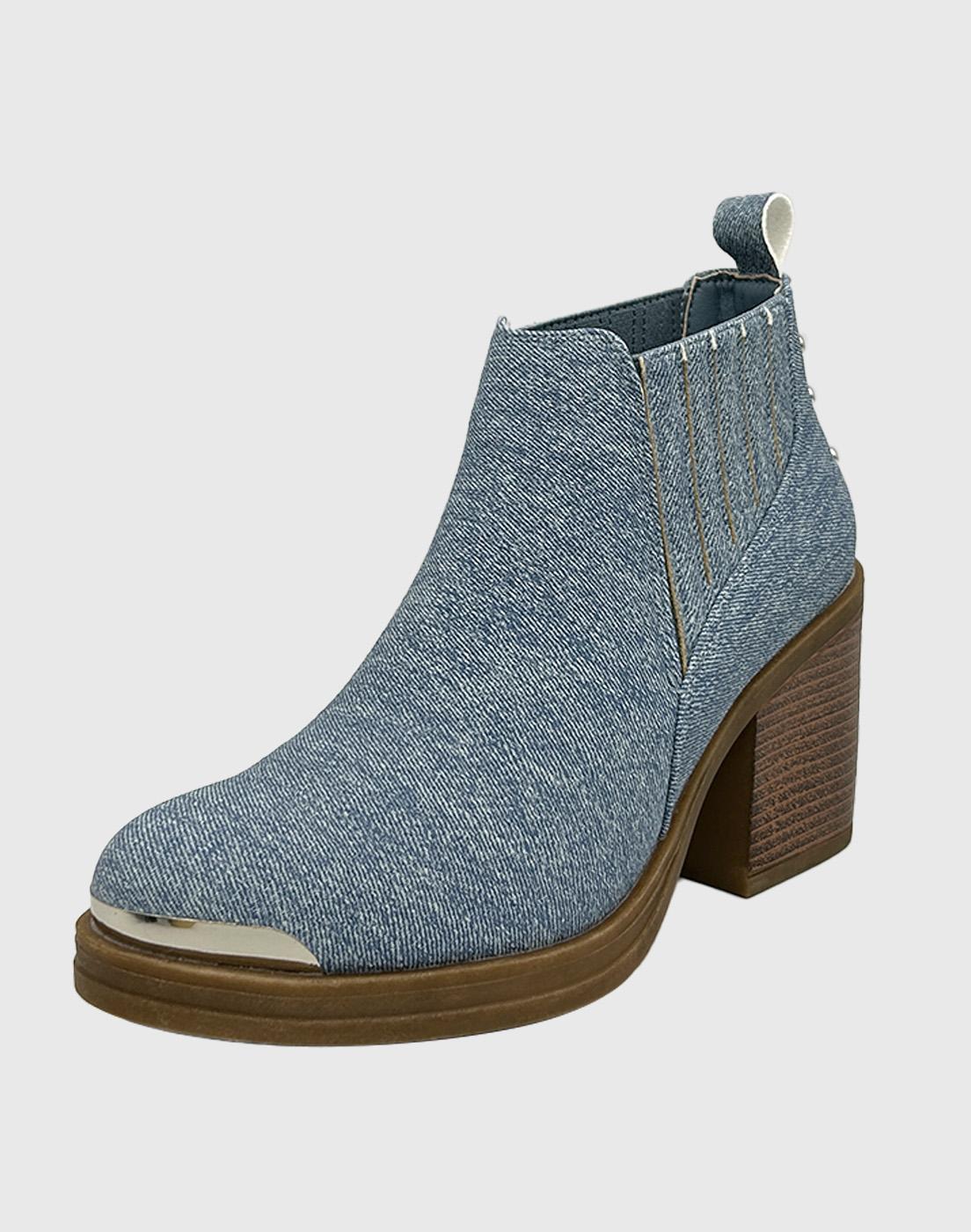 Botin para mujer elasticado con taco azul