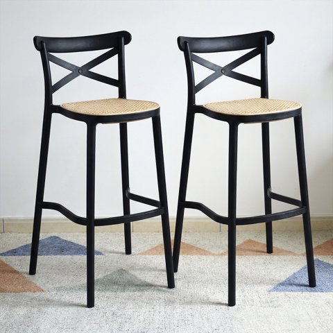 Venhoouse - Pack 2 Taburetes Crossback Danubio 75Cm Piso Bar O Terraza Apilable Negro | Lider Electrohogar