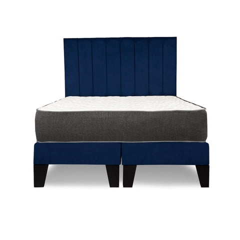 M Sole - Cama King Size Completa Base Americana + Colchón De Resortes + Respaldo Barras Azul | Lider Electrohogar