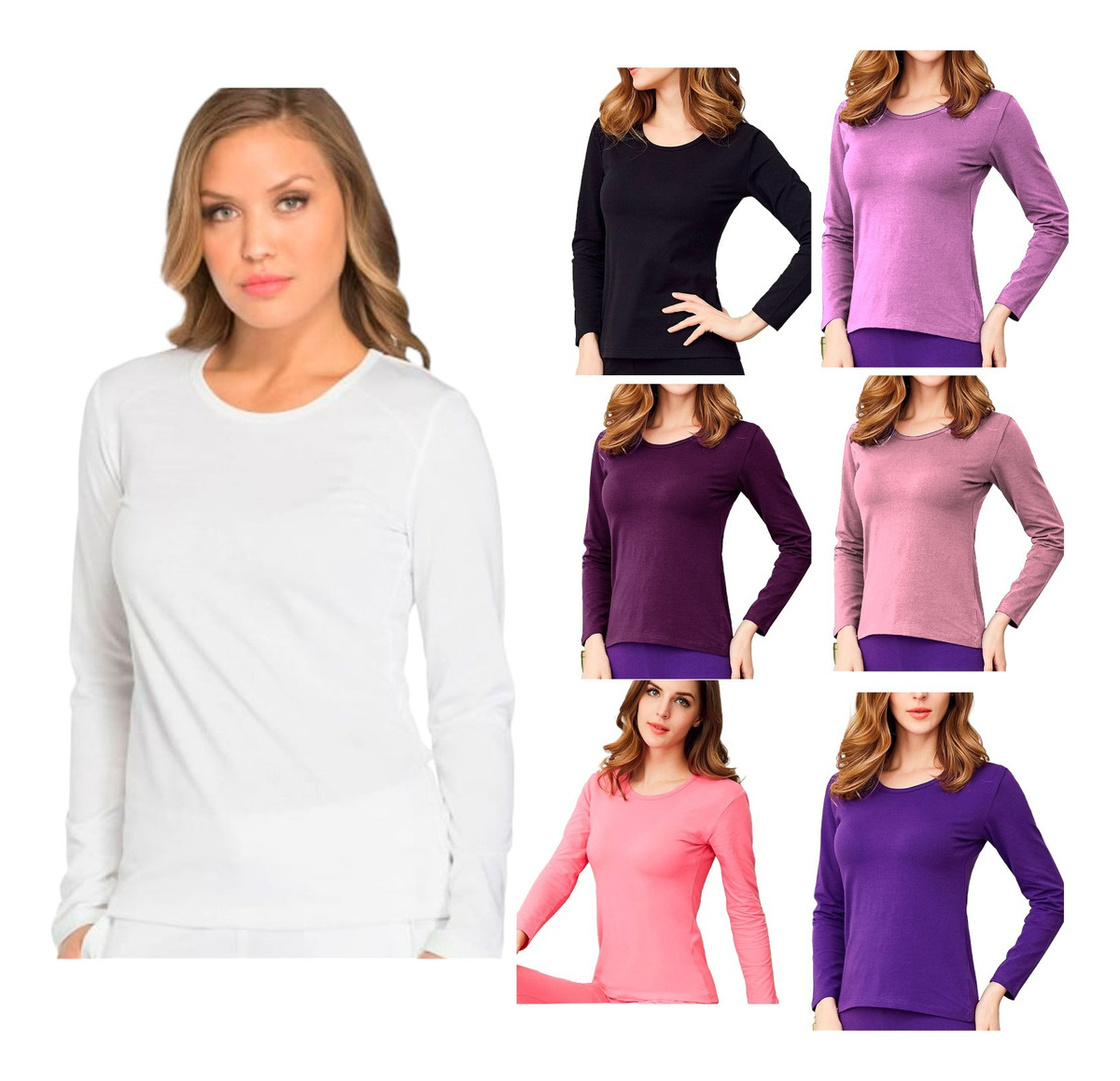 Pack 6 Camisetas Polar Niña Primera Capa Cuello Redondo