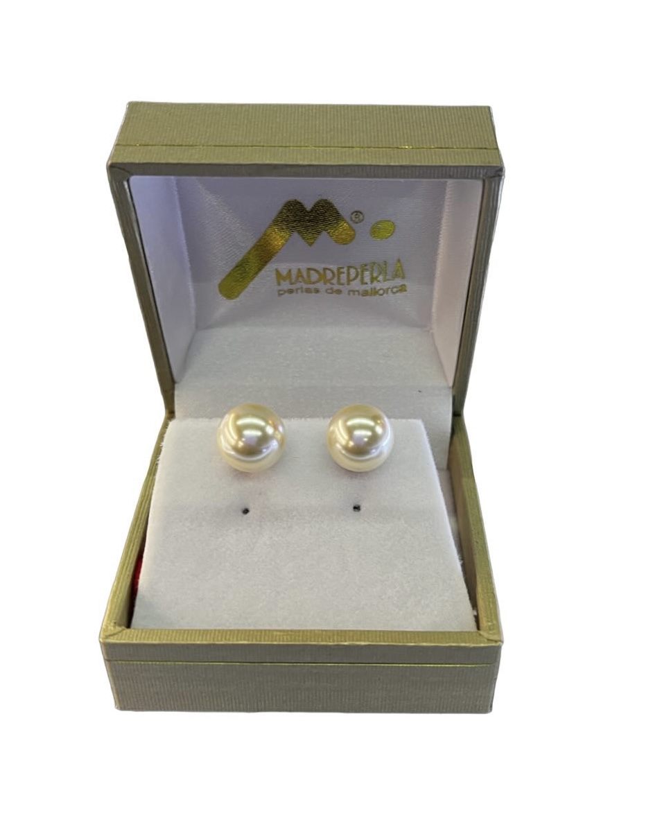 Set Collar De Perlas 40 Cm Mas Aros De Mallorca Enchapado En Oro