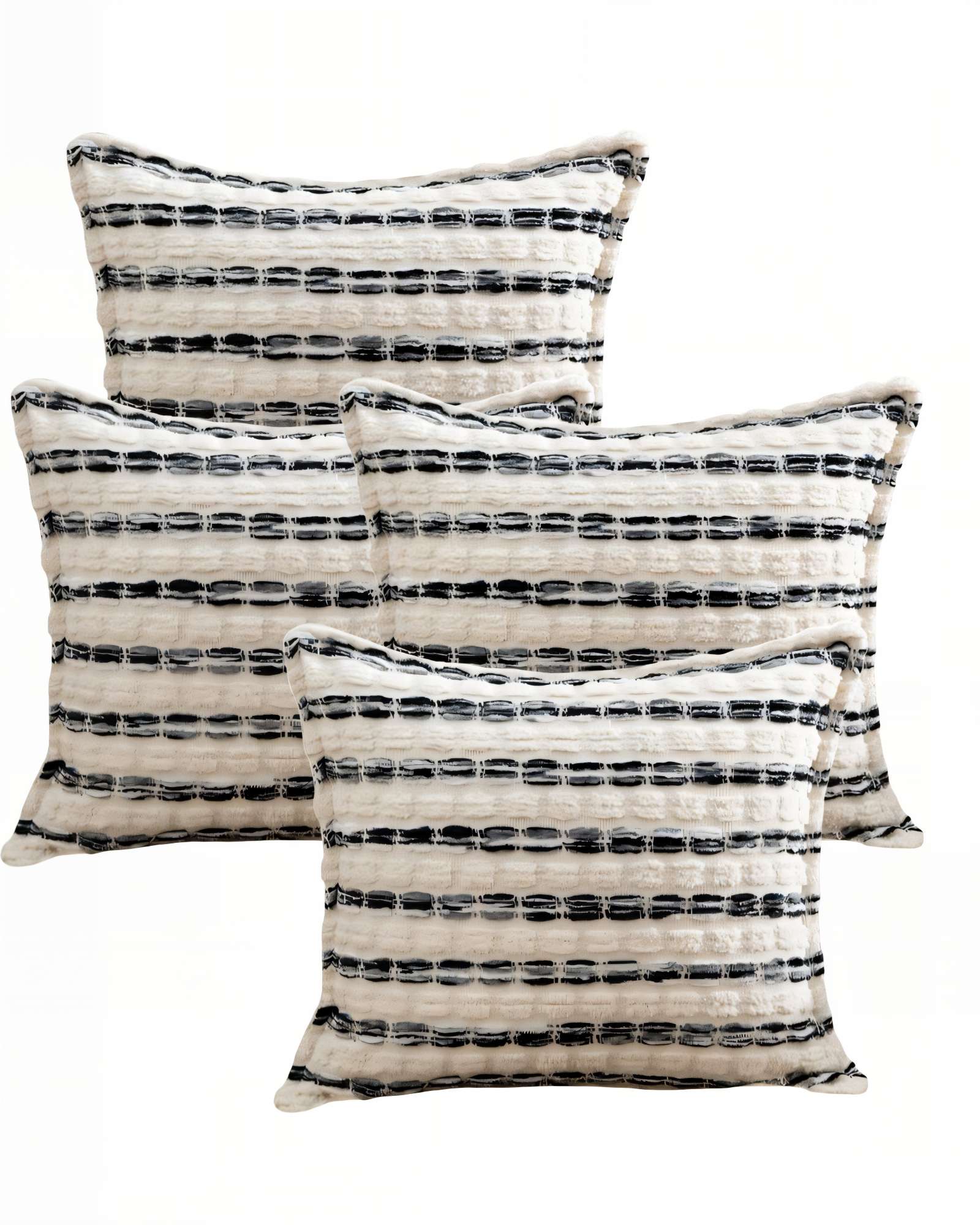 Genérico - Juego De 4 Fundas De Cojin 45Cmx45Cm Blanco Con Negro
