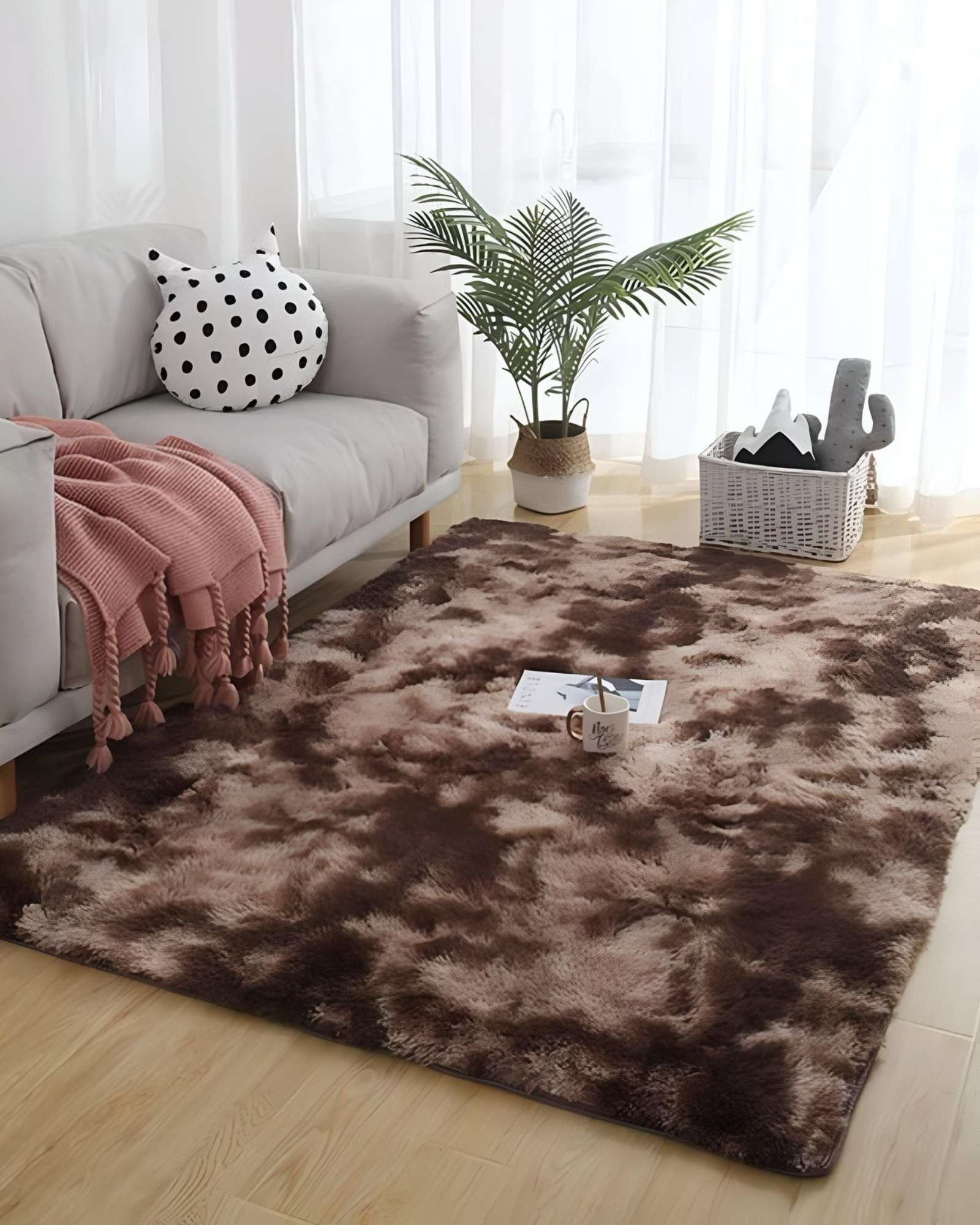 Teng Fei - Alfombra Peluda Suave 240 X 200 Cm Primera Calidad Café Jaspeado | Lider Electrohogar
