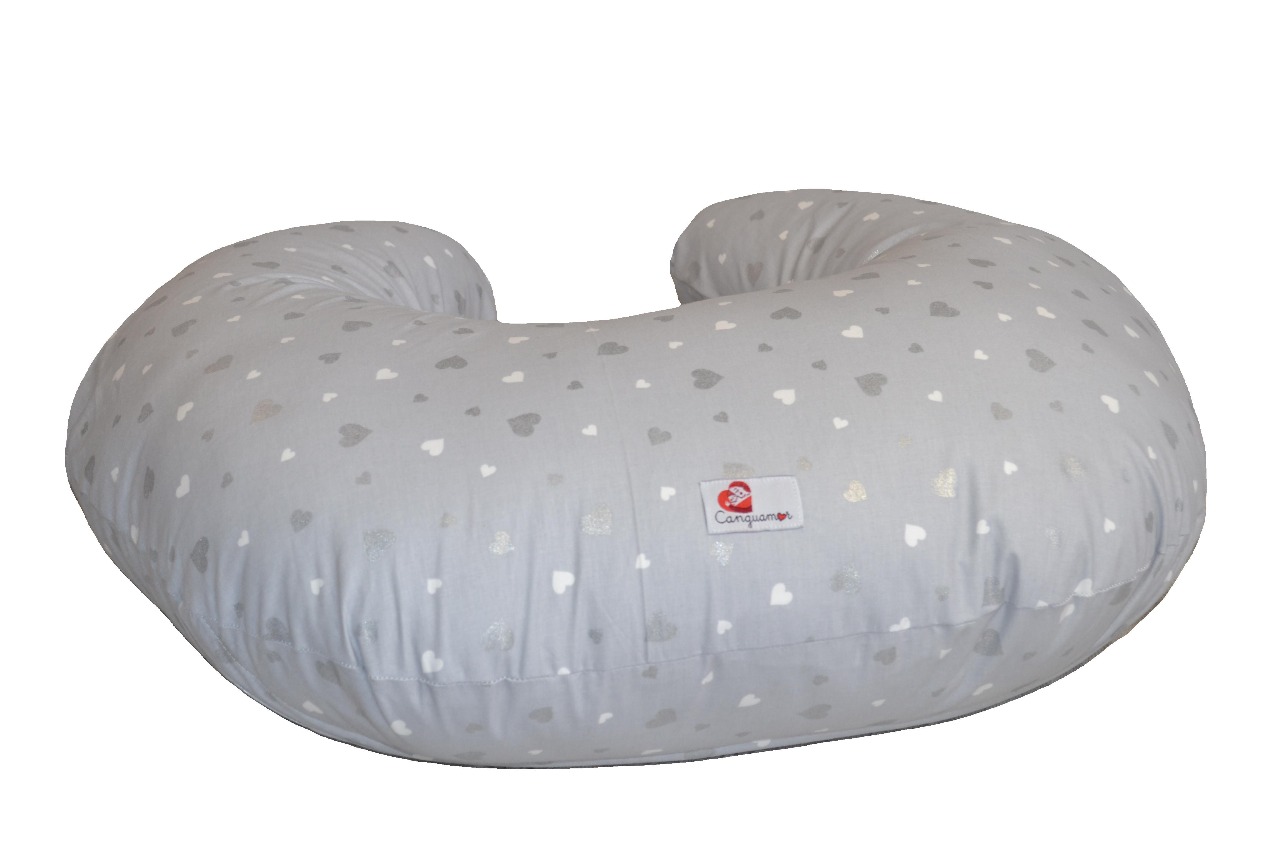 Cojín de lactancia corazones plata, canguamor.