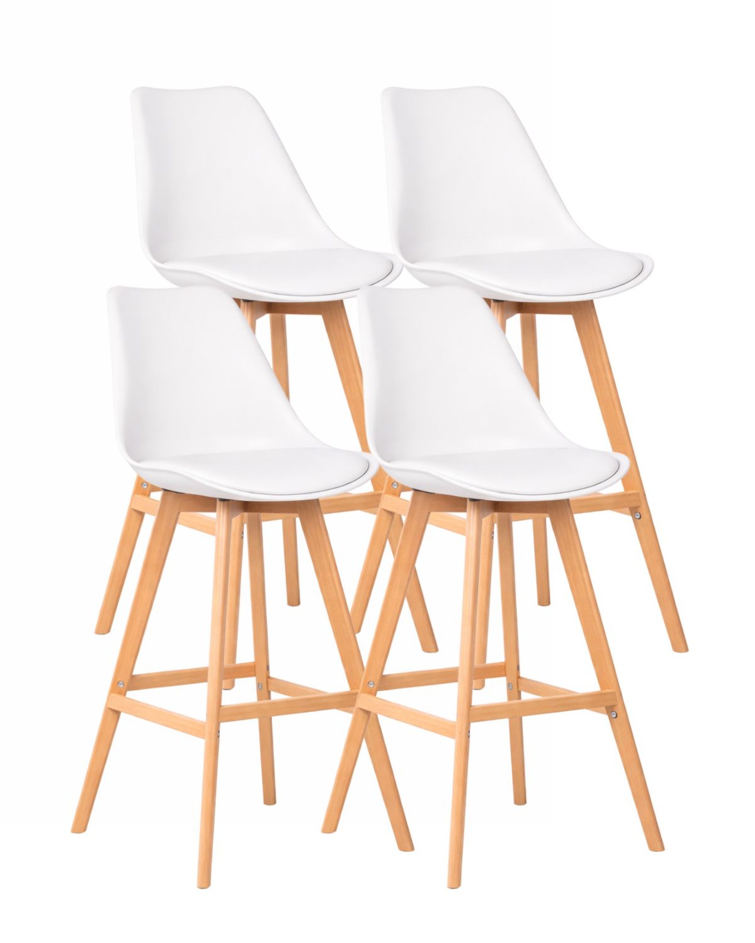 Habita2 Chile - Pack 4 Taburetes Tulip Wood Acolchado 66Cm - Blanco